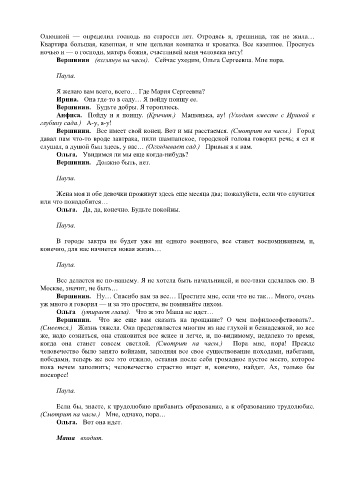 Вершинин (взглянув на часы). Сейчас уходим, Ольга Сергеевна. Мне пора.