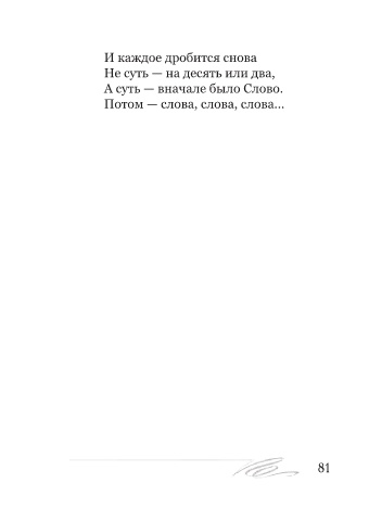 И каждое дробится снова Не суть — на десять или два, А суть — вначале было Слово. Потом — слова, слова, слова... 81
